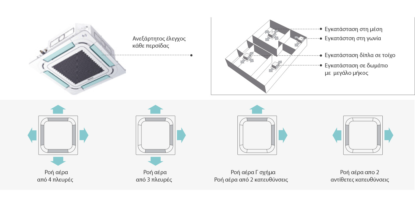 H δυνατότητα ανεξάρτητου ελέγχου της ροής του αέρα είναι ιδανική για να καλύπτει διαφορετικές διαρρύθμισεις χώρου και προσωπικές επιλογές θερμοκρασίας.